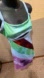 Trendy and colorful mini dress featuring a unique tie-dye and velvet-like diagonal colorblock design.