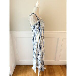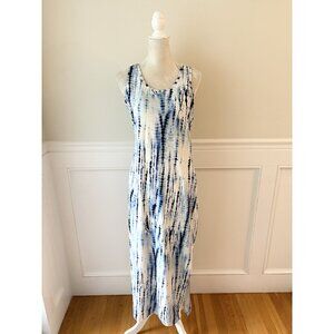 Blue Tie-Dye Racerback Maxi Dress Medium Sleeveless Cotton Blend