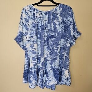 Embrace a casual yet chic look with this blue tie-dye women's top. Perfect for any occasion, this top offers comfort and style.