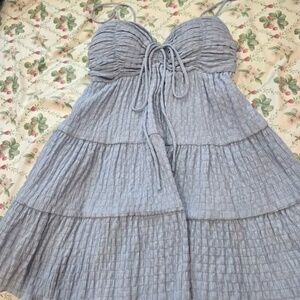 💙 Blue Tiered Mini Dress w/ Built-In Padding – Fits Size Small