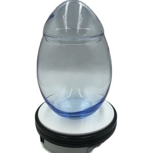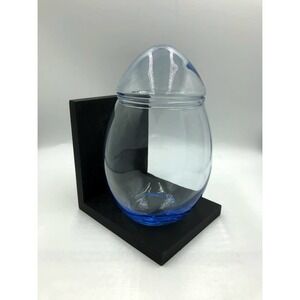 Blue Tint Glass Egg Container with Lid Tabletop Décor Easter. Glass egg is pre-owned in good condition. Please see photos for visible condition. Shelf not included. No original box. The egg is approximately 8 inches x 5 inches. This egg is clear but has a light blue tint to it which is really cool and unique! Brand unknown. There is a small .75 inch indentation on the side - it was from when the manufacturing firing process - it is not a crack/chip. Please see the photo.