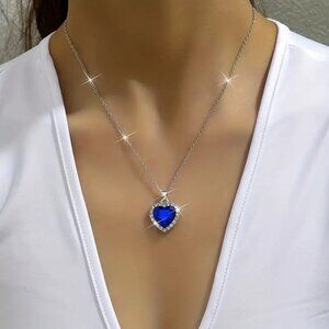 Blue Titanic Heart of the Ocean Crystal Pendant Necklace Rhinestone Jewelry