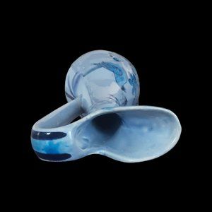 Blue Tonala Mexican Pottery Pitcher w/ Bird. Flower. 13" tall