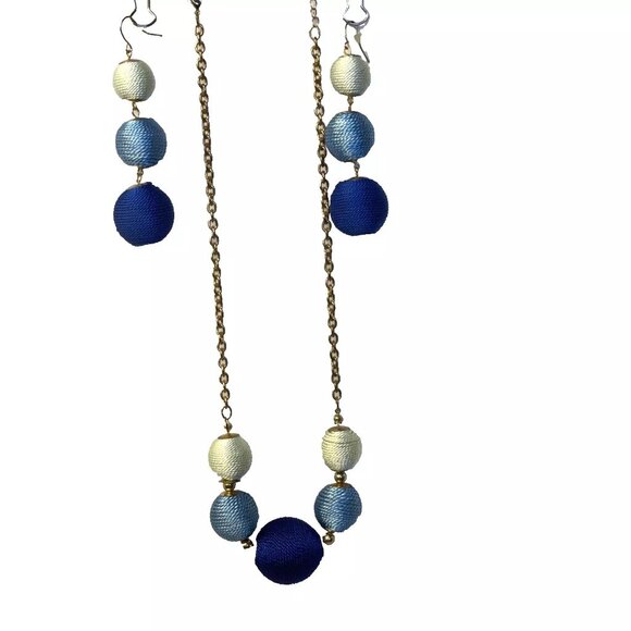 Blue Tones Thread-Wrapped Bead 20" Necklace Matching Drop Earrings