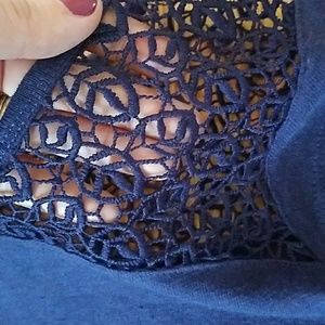 Blue top with netting. This is super cute, but have never worn it, blue just isn't my color!! Is an x-small but fits a small also.