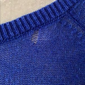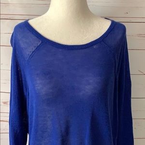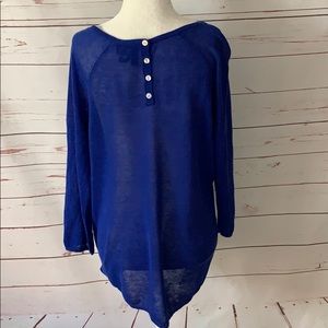 This is a sheer scoop neck top that buttons down the back. There is a tiny tear that looks like a thread loose, but it doesn’t unravel. Easy fix with thread. I love the color and I love the flow. :)