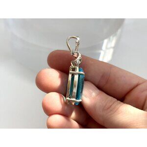 Blue Topaz Gemstone Art Deco Sterling Silver Vintage 925 Statement Pendant