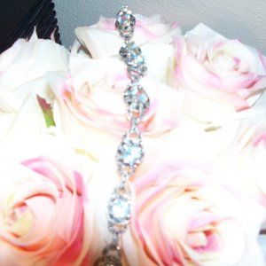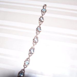 Beautiful sterling silver round blue topaz marcasite bracelet, 7" long.