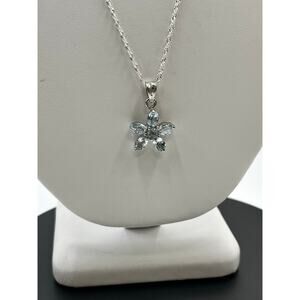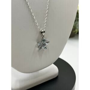 Blue Topaz Marquis Shaped Flower Pendant and Sterling Silver Singapore Chain 20”