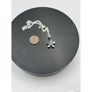 Beautiful Blue Topaz Marquis Shaped Flower with round center Pendant and Sterling Silver Singapore Chain 20”
