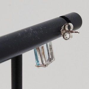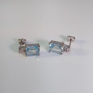 - The 4 carat total weight sky blue topaz gemstones are emerald cut and measure 6x8 mm.