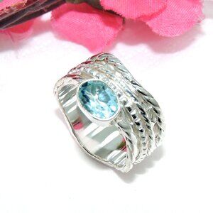 Blue Topaz Spinner Ring, Sterling Silver, Handmade Design Ring, Ring Size:-8US