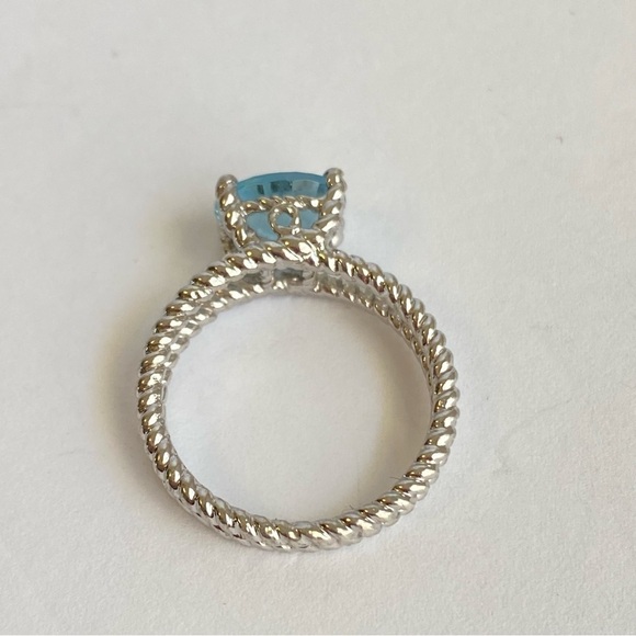 Blue Topaz Sterling Silver Ring Twisted Rope Solitaire Band Simple Size 9