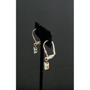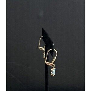 Blue Topaz Teardrop Gold Tone 1" Drop Dangle Leverback Pierced Earrings 1.6 g