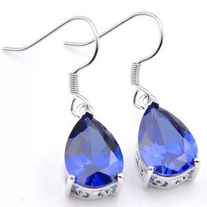 Blue Topaz Teardrop Pendant Necklace Earrings Set 925 Sterling Silver Plated