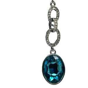 Blue Topaz and Rhinestone Silver Tone Dangle Drop Earrings 2.5 inch