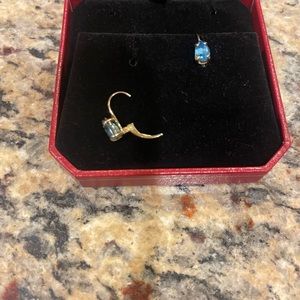 These are blue topaz and gold tear drop earrings. Hardly worn and in excellent condition. Drop is about 1/4 inch.