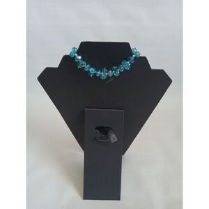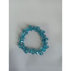 Blue Translucent Imitation Faceted Crystal Beads Elasticized Statement Bracelet