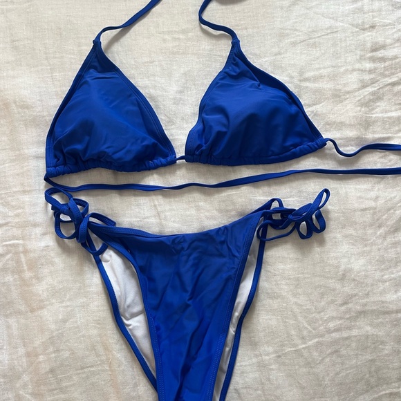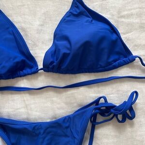 Dive into style with this vibrant blue triangle bikini set. Perfect for a day at the beach or lounging by the pool.