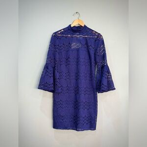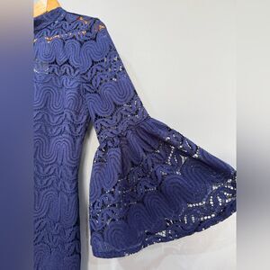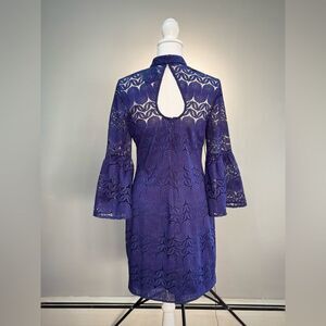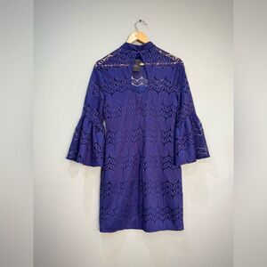 Blue Trina Turk Lace Overlay Bell Sleeve Dress Size 4 NWT