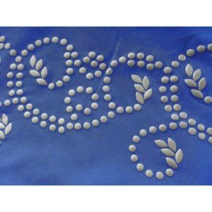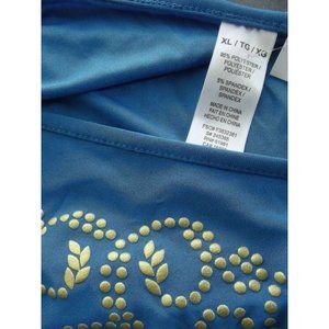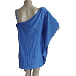 Blue Tunic Blouse Women's XL One Shoulder shirt top gold design polyester dress