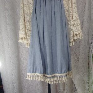 Blue Tunic Dress Cover-up Tunic Ivory Crochet Trim Leisurewear NWOT