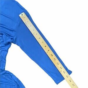 Blue Tunic Shirt Top with Asymmetrical Ruffled Eyelet Hem 3/4 Sleeves Size Large