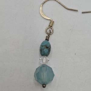Blue Turquoise Bead Dangle Earrings And Light Blue Faceted Crystal Glass Hooks