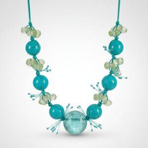 Blue Turquoise Color Beaded Cord Necklace Adjustable Silver Tone Statement