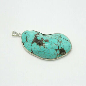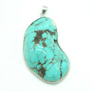 Blue Turquoise Large Silver Plated Large Necklace Pendant 28 grams Vintage