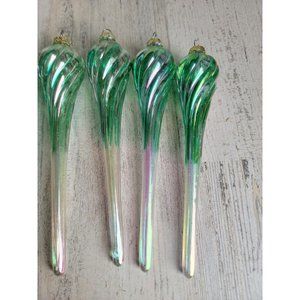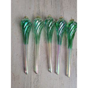 Blue Twisted glass iridescent long ornament Xmas set
