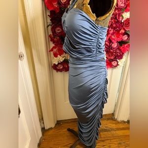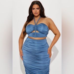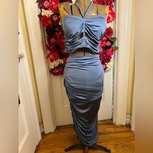 Light Blue Two Piece Set with Gold Zipper Detail, Cut Outs and Ruched Sides. Perfect for Vacation, Romantic Getaway, Girls Night, Birthday or Brunch!