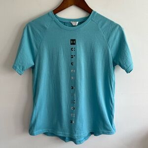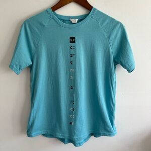 Blue Under Armour Graphic Tee with Ruched Back Design Perfect with Yoga Pants