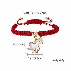 Beautiful classic design blue unicorn horse charm bracelet red weaved rope with gold beads. Charm is gold over alloy. Adjust to fit with pull extensions. High polished shine, brand new, never been worn. Lead, nickel free. This bracelet sparkles.