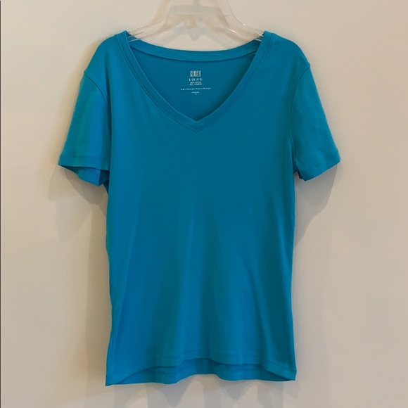 Blue V neck shirt. Worn but still in good condition. Cotton material.