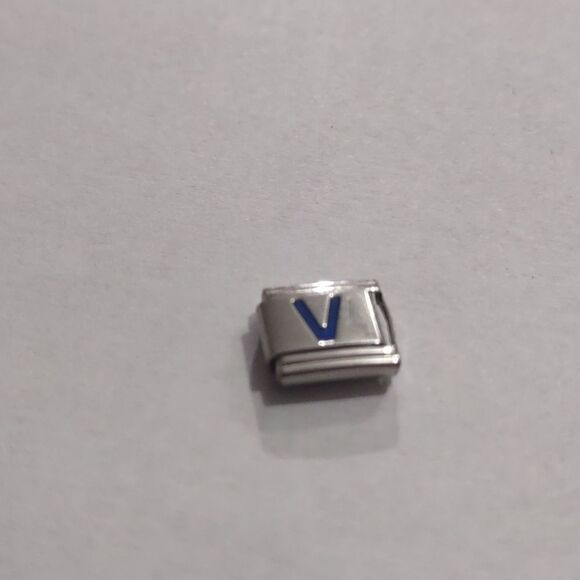 Blue V Italian Link Stainless Steel Nomination Style Charm