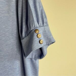 This relaxed t-shirt features a cuffed sleeve design and is available in a beautiful blue color. The soft fabric drapes nicely, making it perfect for everyday wear. With its stylish cuffed sleeves, this top adds a trendy touch to your casual wardrobe. EUC. Size 2x