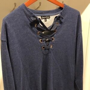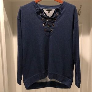 Alison Andrews COOL navy blue lace vneck sweatshirt!