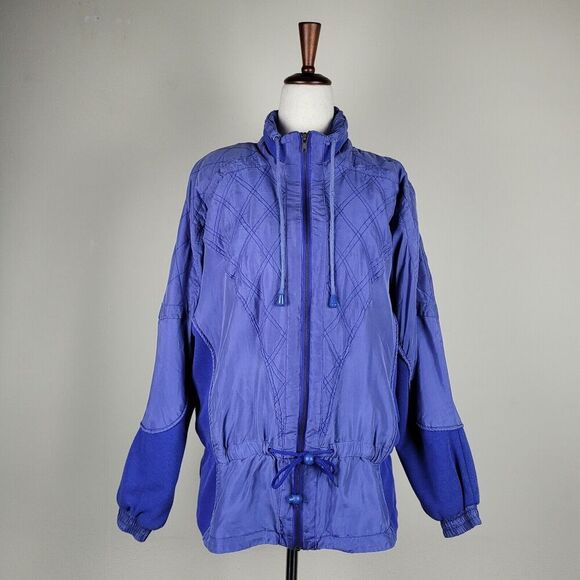 Blue VTG Jacket Womens Small Silk Quilted 80s 90s Cinch Knit Purple Periwinkle