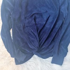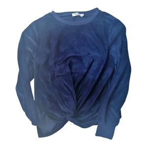 Blue Velvet Front Knot Twist Women's Pullover Sweatshirt Size Large