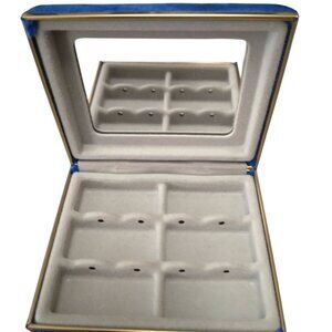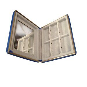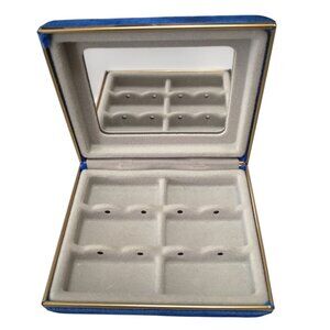 Blue Velvet Hard Case Earring Jewelry Box With Inside Mirror Hinged Travel