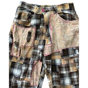 Blue Velvet Ladies L XL Patchwork Boho Pants Distressed Hippie Plaid Floral New