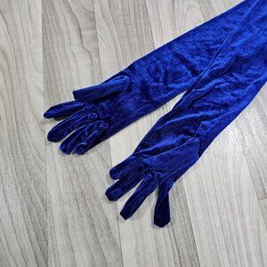 Blue Velvet Long Opera Gloves Costume Cosplay Formal, One Size