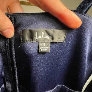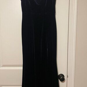 Dark blue velvet dress. Worn once - excellent condition. Lulus size S evening dress with side slit (shown in picture). Dress has been dry cleaned.