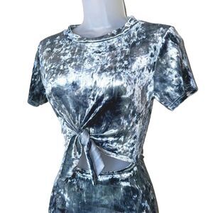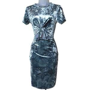 Blue Velvet Short Sleeve Mini Bodycon Dress Front Tie Cutout Stretchy Size Small