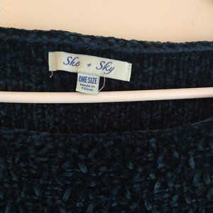 Oversized Blue Velvet Knit Sweater. She + Sky. One Size.