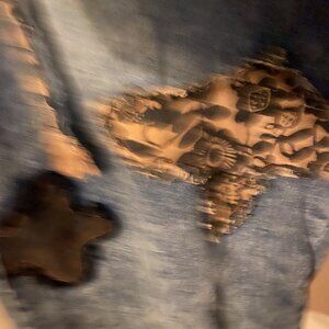 Blue Velvet patchwork overalls, size medium