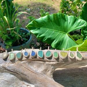 Blue Wave Sea glass Handmade 995 925 silver soldered necklace beach bohemian
