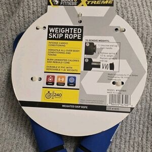 Weighted skip rope with blue handles. Ideal for cardio and conditioning.