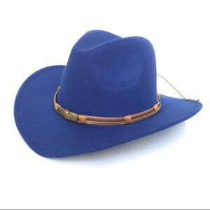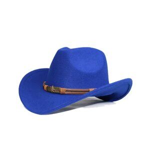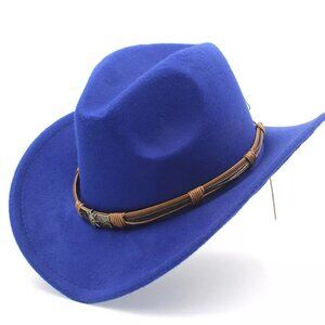Blue Western Cowboy Cowgirl Hat, Skull Ace Band, Felt Wide Brim Men Women Rodeo